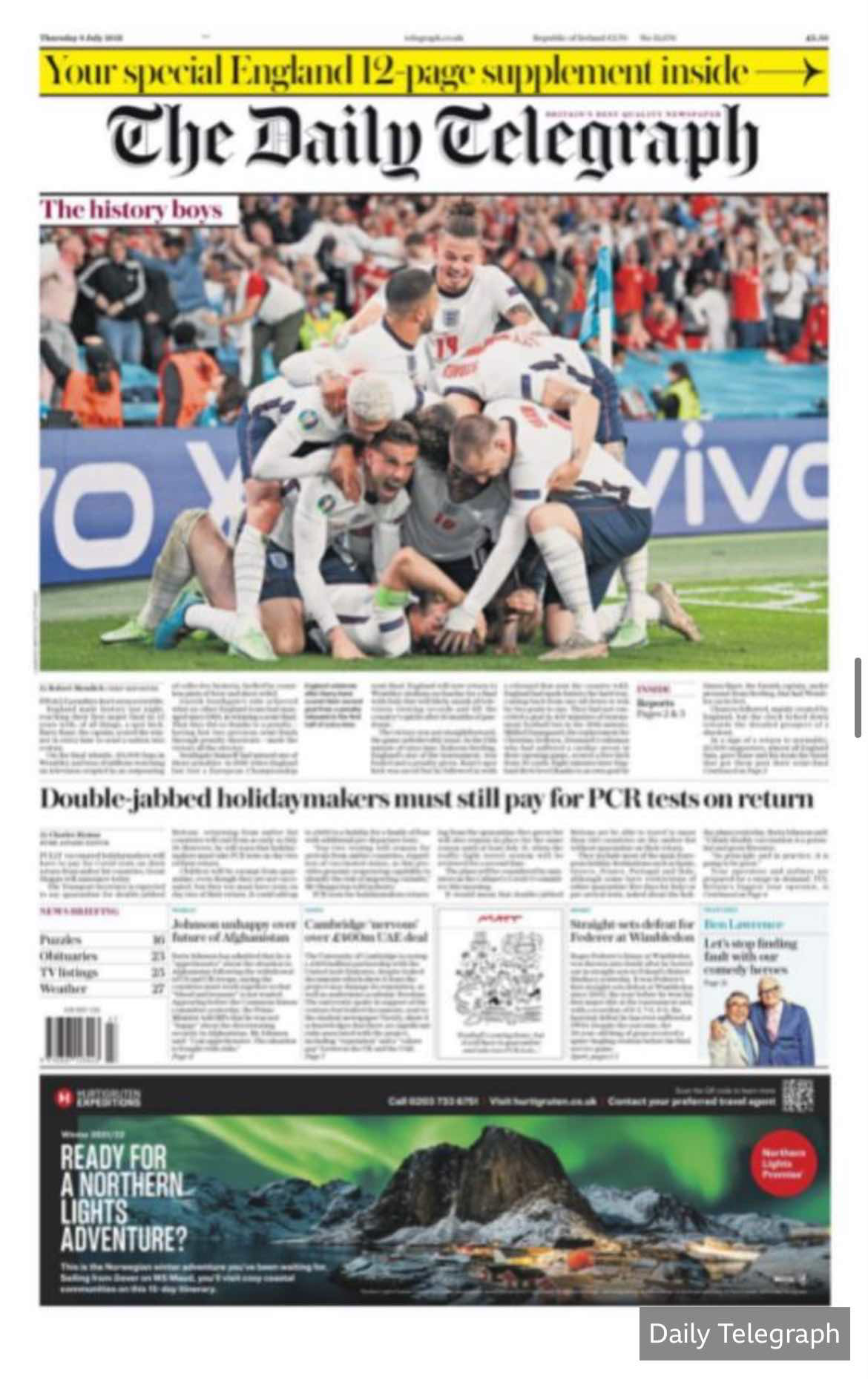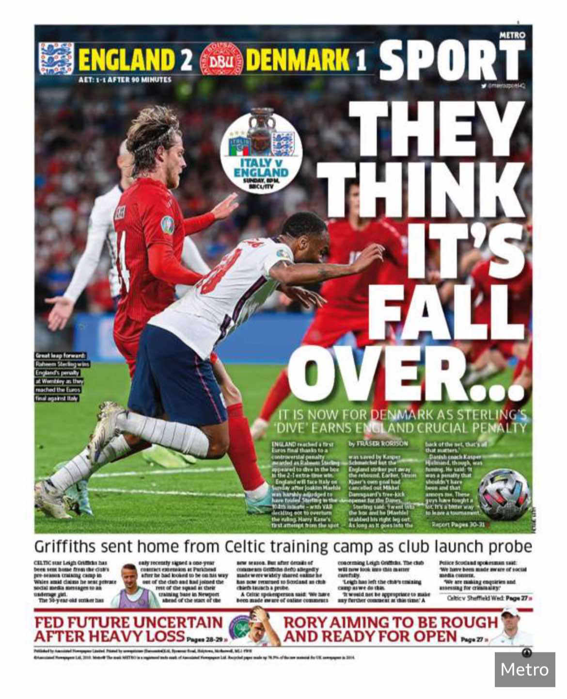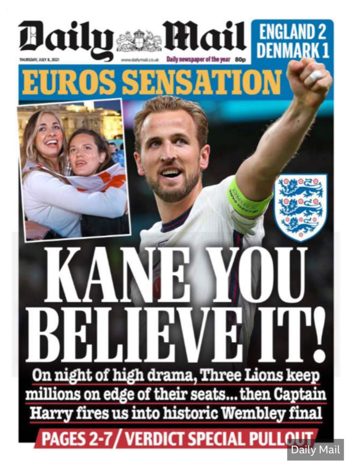 July 08, England beat Denmark to advance to the European Cup final. In addition to the Internet media, which enjoys the advantage of timeliness, many British print media also put the England team on the front page.